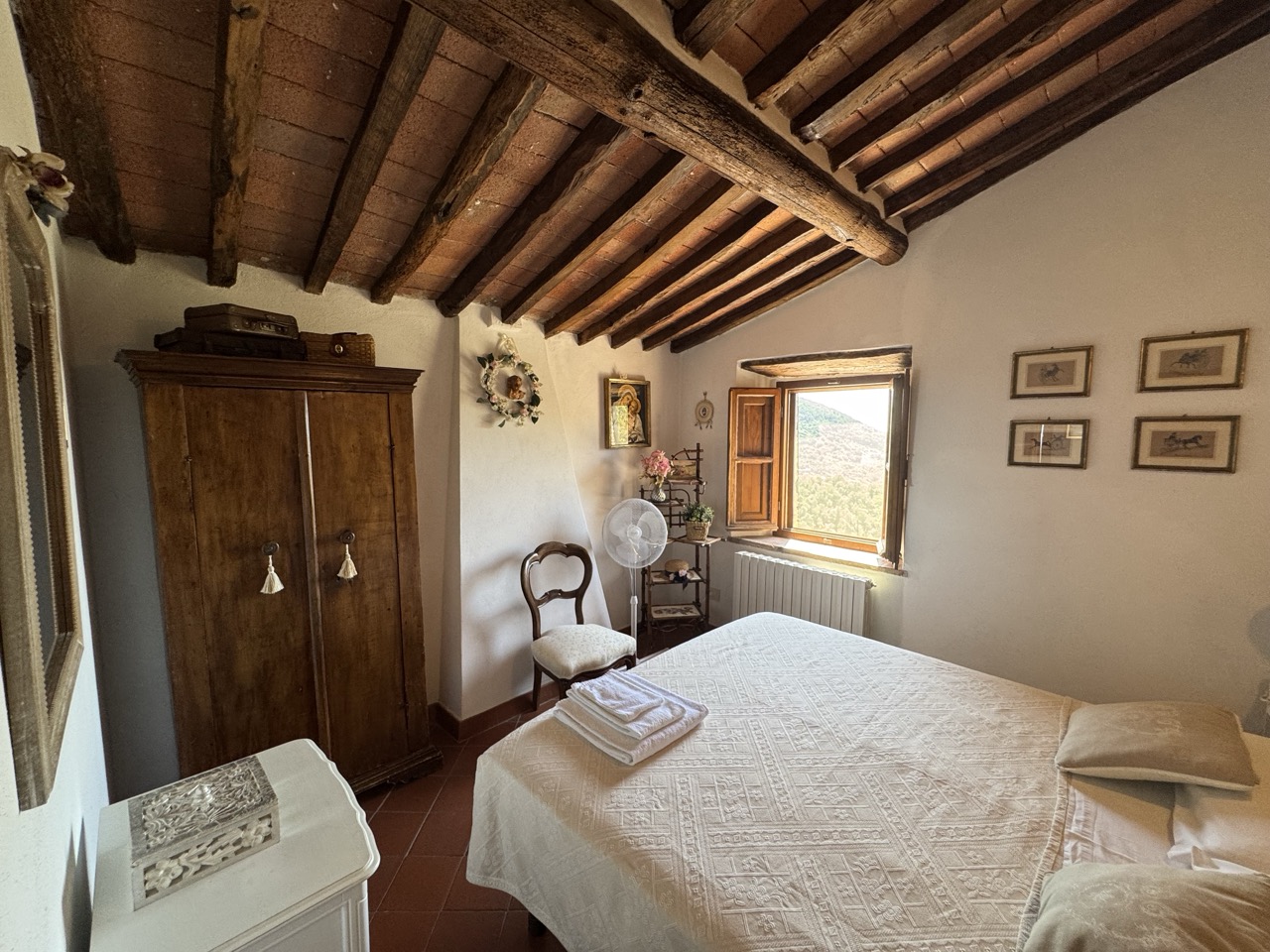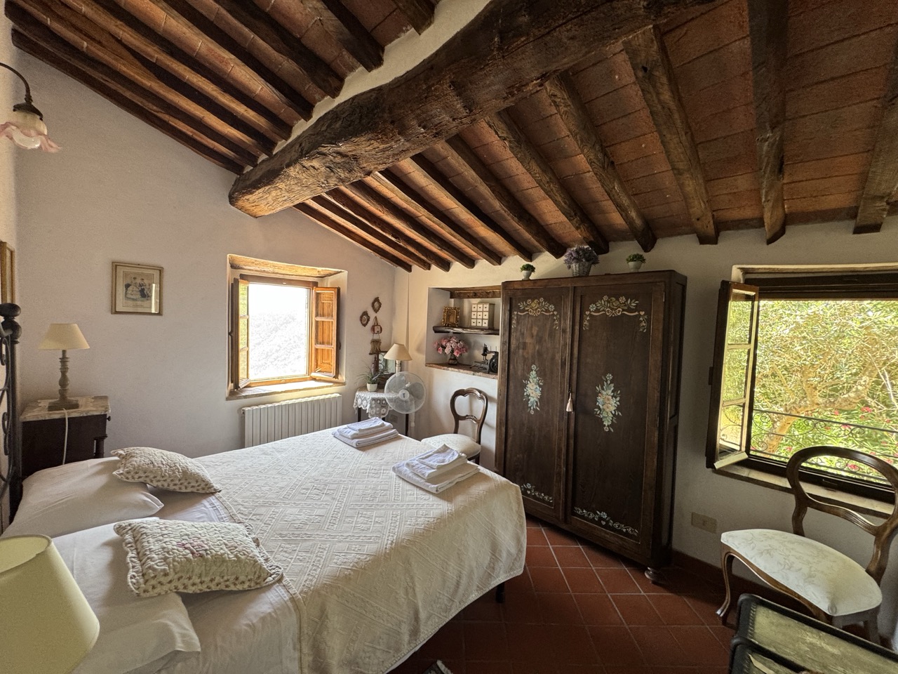 In Piccolo Borgo immerso nel verde proponiamo in esclusiva una Piccola Casa Rustica indipendente con giardino privato. L'immobile, con facciate in pietra a vista, è in ottimo stato di manutenzione si eleva a due piani e si compone al piano terreno di zona giorno con cucina a vista e camino, disimpegno e bagno. Al piano primo disimpegno, due camere ed ulteriore bagno. I soffitti dell'immobile rispecchiamo lo stile toscano con travicelli in legno e mezzane in cotto "a vista". Esternamente è confrontata da ampia zona pavimentata in cotto con tettoia in ferro e giardino privato adornato da piante aromatiche e verde. I terreni esterni composti da giardino ed oliveti sono circa di 4200 mq.. L'esposizione e la vista rendono questo immobile unico nel suo genere. Attualmente l'immobile è impiegato nella locazione turistica con ottime capacità di resa. Ideale per chi ricerca quiete, seconda casa od immobile da investimento.