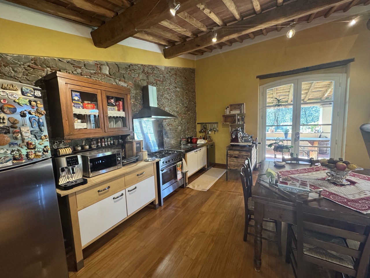 Un’elegante limonaia dal fascino senza tempo, immersa nel verde e nella quiete, in posizione pianeggiante, proponiamo in vendita una splendida limonaia finemente ristrutturata, dove il sapore autentico della tradizione incontra il comfort contemporaneo. Un’abitazione unica, capace di conquistare al primo sguardo. Gli ambienti raccontano una storia di cura e ricercatezza: soffitti con travi in legno e mezzane, suggestive pareti in pietra a vista, parquet caldo e raffinato sotto ogni passo. Il grande living, luminoso e scenografico, si apre direttamente sull’elegante spazio esterno lastricato in cotto antico, creando una perfetta armonia tra interno ed esterno. La cucina a vista, ampia e perfettamente integrata, valorizza la convivialità dello spazio, mentre il grande camino regala atmosfera e intimità nelle stagioni più fresche.La zona notte è un’oasi di comfort: la camera padronale, con bagno en suite, accoglie una suggestiva vasca idromassaggio in muratura, pensata come un piccolo angolo di benessere privato. Completano la proprietà due ulteriori camere, un secondo bagno e un comodo ripostiglio.Il riscaldamento a pavimento, l’eccellente stato di manutenzione e le finiture di alto livello rendono questa dimora pronta da vivere, senza compromessi.All’esterno, il giardino recintato e perfettamente curato è un invito al relax, pienamente godibile grazie alle ampie porte-finestre che incorniciano il verde come un quadro naturale. Nelle immediate adiacenze, oltre 4.500 mq di terreno prevalentemente ad oliveto completano questa proprietà di raro fascino.I caratteristici portelloni in legno, autentico richiamo alle antiche limonaie, donano all’immobile un’identità forte e inconfondibile. Una residenza di charme, ideale per chi desidera vivere la tradizione con il comfort di oggi.Indicazione di posizione approssimativa.